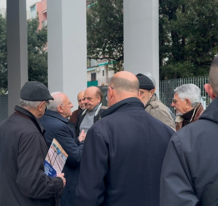 Spendere 150 milioni per il restyling dello stadio Arechi per poi ritrovarci in una categoria inferiore non sarebbe un bel biglietto da visita per la città di Salerno. Lo ha detto il presidente della regione Campania Vincenzo De luca, dopo aver accennato la questione anche ai giornalisti, in un incontro Informale che ha avuto questa mattina al termine della conferenza stampa che si è svolta presso il centro parrocchiale di San Giuseppe in via Guido Vestuti a Salerno, incontrando Riccardo Santoro, presidente del Centro di coordinamento salernitana Club ed altri tifosi come il consigliere comunale Antonio Carbonaro e l’ottantacinquenne Rocco Olivieri che domenica scorsa era in trasferta a Pisa. Abbiamo chiesto al presidente di parlare lui direttamente con Iervolino per farci capire cosa vuole fare hanno dichiarato al termine dell’incontro i tifosi accusando l’attuale patron della salernitana di cambiare in continuazione idea. “Noi continueremo ad andare allo stadio- ha assicurato a nome dei tifosi il presidente Santoro- di meno, ma sempre presenti”.