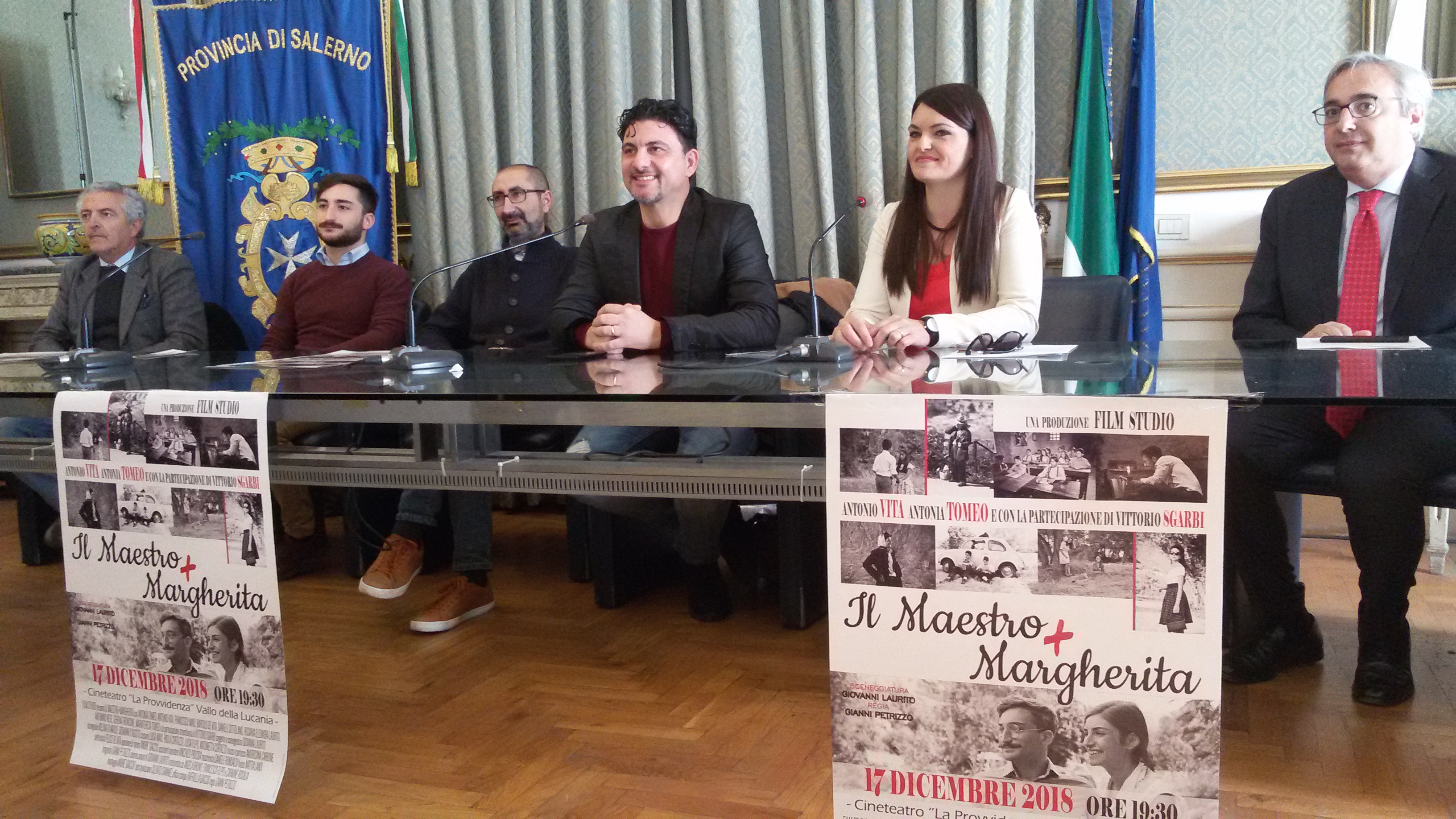 Il territorio cilentano protagonista nelle sale cinematografiche d’italia. Uscirà a gennaio del prossimo anno il film commedia “Il Maestro + Margherita” prodotto da Film Studio, scritto da Giovanni Laurito per la regia di Gianni Petrizzo fortemente voluto da don Luigi Rossi, parroco della chiesa S. Maria Assunta di Cannalonga con lo spirito di aggregare la comunità. Prodotto e distribuito da Film Studio è stato presentato questa mattina a Palazzo Sant’Agostino alla presenza dell’ autore della pellicola Giovanni Laurito e del regista Gianni Petrizzo. Il lungometraggio è stato girato nel Cilento, è interpretato da Antonio