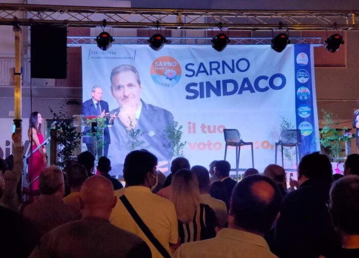 Ha parlato ad una folta platea per un’ora, illustrando qual è il lavoro che intende portare avanti per la città di Salerno, chiedendo un voto libero ai cittadini. Sempre “dalla parte della gente” , Sarno che oggi conta sei liste a suo sostegno con Fratelli d’italia, Forza Italia-Udc-Liberal Socialisti,Rinascita-Sarno Sindaco, Prima Salerno, Io sono salernitano , Diversi ma uguali, ha concentrato il suo discorso sui problemi dei diversi quartieri e in modo particolare di quelli della zona orientale.
