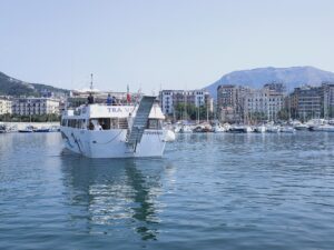 Sono tredici le corse giornaliere dei traghetti (le società sono Travelmar, Alicost e Sant’Andrea srl, i tre armatori detengono il 45% delle quote societarie) verso la Costiera facendo scala a Cetara, Minori, Maiori, Amalfi e Positano, una (ore 7.30) verso Capri. L’attività è cominciata a giugno e terminerà il 31 ottobre dopo tanti disagi non piu file sotto il sole.