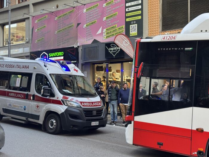 La vistosa macchia di sangue presente sull’asfalto testimonia la gravità della ferita riportata dall’uomo di circa sessant’anni che ieri è rimasto ferito nell’impatto con un autobus di linea in via dei Principati, a Salerno. Alcune fratture facciali ed una ferita sull’arco sopracciliare ne hanno reso necessario il trasporto in codice rosso al pronto soccorso del Ruggi, dove resta sotto osservazione. Si indaga ancora anche sulla dinamica di quanto è accaduto nel tardo pomeriggio di ieri intorno alle 18: indagini a cura della polizia municipale di Salerno che ha sottoposto a sequestro l’autobus e con l’aiuto anche della polizia di Stato interrogato l’autista alla guida per capire cosa è accaduto. Secondo la prima ricostruzione l’uomo ferito sarebbe inciampato mentre percorreva il marciapiedi e avrebbe sbattuto la testa contro lo specchietto dell’autobus, ma non è chiaro se invece sia stato proprio l’impatto con l’accessorio del pullman ad avergli fatto perdere l’equilibrio. Alla scena avvenuta un pieno centro hanno assistito molte persone che sono state ascoltate come testimoni. A soccorrere la vittima un dottore in servizio presso il centro medico ME, situato a poca distanza dall’incidente, che ha prestato le prime cure fino all’arrivo di un mezzo di emergenza che ha trasportato la persona ferita al pronto soccorso del Ruggi per suturare la lesione avvenuta sul volto e le altre fratture facciali.
