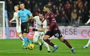 da un difensore rossonero, si supera Maignan che evita l’autorete. Al 32’ ancora granata in avanti con Candreva che calcia dal limite, palla di poco alta sopra la traversa. Al 41’ granata pericolosi con Kastanos, ancora Maignan salva in angolo. Dal corner seguente pareggio Salernitana: cross di Candreva e colpo di testa vincente di Fazio che vale l’1-1 con cui si chiude la prima frazione di gioco. Al 15’ della ripresa ospiti pericolosi con la conclusione di Loftus-Cheek