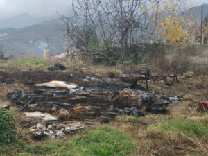 Nell’area oggi sono bene visibili seppur anneriti oggetti ferrosi, cerchi di pneumatici residuo di una buona quantità di pneumatici che sono andati in fiamme, ma non si esclude che nell’area potessero esserci anche liquidi inquinanti. L’area posta sotto sequestro dalla Polizia Municipale presenta anche un accumulo di materiale plastico di vario genere che solo per il tempestivo intervento dei vigili del fuoco non è andato in fiamme.