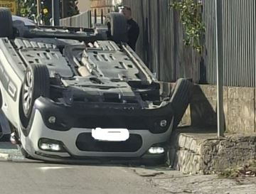 Per cause in via di accertamento, due auto si sono scontrate con una delle due, una Citroen C3 che si è capovolta finendo contro il muretto di un’abitazione che costeggiava la strada.