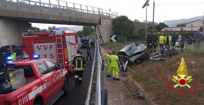 Per cause ancora in via di accertamento, probabilmente a causa del manto stradale reso scivoloso dalla pioggia, il conducente di un’auto, un’Alfa 146, ha perso il controllo della vettura, superando il guardrail ed andandosi a schiantare sul terrapieno posto al lato della carreggiata. Gli occupanti dell’auto, una coppia di coniugi, sono rimasti incastrati tra le lamiere tanto da richiedere l’intervento dei Vigili del Fuoco per liberali.