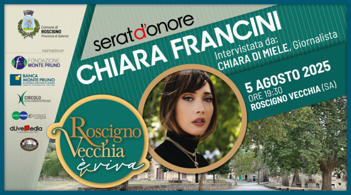 Nel cuore del borgo di pietra che respira storia e resistenza, la terza serata della rassegna “Roscigno Vecchia è viva” si rende protagonista di un incontro che unisce cultura, narrazione, emozione. Si annuncia come una vera serata d’onore, curata nella regia da dLiveMedia, sotto la direzione di Roberto Vargiu.