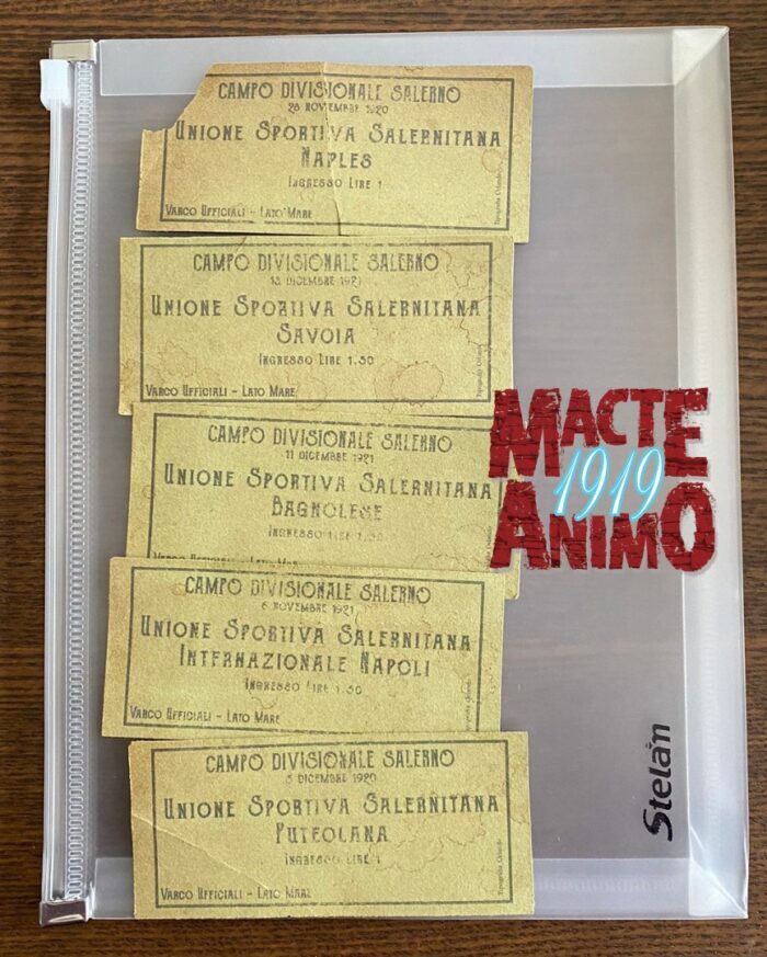 E’ proprio in un momento di grande difficoltà e sofferenza per la nostra amata Bersagliera che fa ritorno a Salerno un vero e proprio tesoro della nostra memoria sportiva. L’associazione Macte Animo 1919 è felice di condividere la gioia con tutto il popolo granata e con la U.S. Salernitana 1919. Sono di nuovo a casa 5 biglietti d’ingresso al campo di Piazza d’Armi (Campo Divisionale) relativi ai tornei di Prima Categoria 1920/21 e Prima Divisione 1921/22. Sono stati recuperati presso l’archivio privato di un collezionista di Roma. Cimeli dal valore inestimabile che andranno a far parte della collezione permanente dedicata alla storia della nostra U.S. Salernitana 1919. Restate sintonizzati con noi!!!