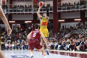 Le “bombe” di Gray e Stewart da una parte, il duo Petrucelli-Horton dall’altra ad aprire i giochi, 7-6 dopo i primi 120”. Givova con percentuali sontuose al tiro, Robinson con due triple consecutive impatta a quota 13, a metà della prima frazione sono i liberi di Sorokas a dare il +2 agli ospiti. Si accende Rob Gray con due “and-one” nel giro di un amen, Hruban mette a referto i primi punti in maglia gialloblù, Givova avanti di 4 a 90” dalla prima sirena, 23-27. Una Scafati straripante nella metà campo offensiva chiude avanti di 5 al 10’ grazie ad un’altra tripla di Stewart, 25-30.