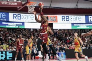 Nella terza frazione è fondamentale il lavoro di Wiltjer, che piazza tre bombe aiutando i compagni a contenere i danni. Nel terzo periodo si procede punto a punto, tra botta e risposta con svariati cambi di leadership, fino a 90″ dalla sirena finale. Wiltjer opera il sorpasso con un tiro in allontanamento, Moretti piazza una tripla pesantissima per il +5 a 50″ dalla conclusione e infine il gioco da tre punti di Kabengele chiude definitivamente i giochi.