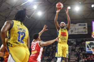 I canestri di Robinson e Nunge valgono il -4 all’11’ (20-24). Entrambi i quintetti perdono lucidità, sbagliano qualche facile passaggio e conclusione e rallentano i ritmi della sfida. Di questa situazione se ne avvantaggia la truppa di casa, che accorcia ulteriormente con Rossato al 15’ (27-28). Nonostante la presenza di Gamble sotto le plance, Visconti e Cinciarini danno nuova linfa ai marchigiani (31-36 al 17’). Gli scafatesi però non mollano e non si lasciano sopraffare, restando agganciati all’avversario (38-40 al 18’). All’intervallo il punteggio è di 40-44 in favore degli ospiti.