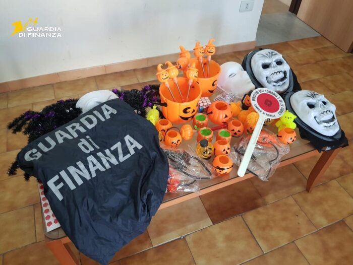 Durante le recenti festività di Halloween, i Finanzieri del Comando Provinciale di Salerno hanno intensificato i controlli contro l’abusivismo commerciale e nei settori della contraffazione dei marchi e della tutela del “Made in Italy”. Nel corso di diversi interventi, infatti, sono stati sottoposti a sequestro oltre 60.000 oggetti non sicuri e manchevoli della documentazione obbligatoria richiesta dalla normativa di settore, nazionale ed europea.