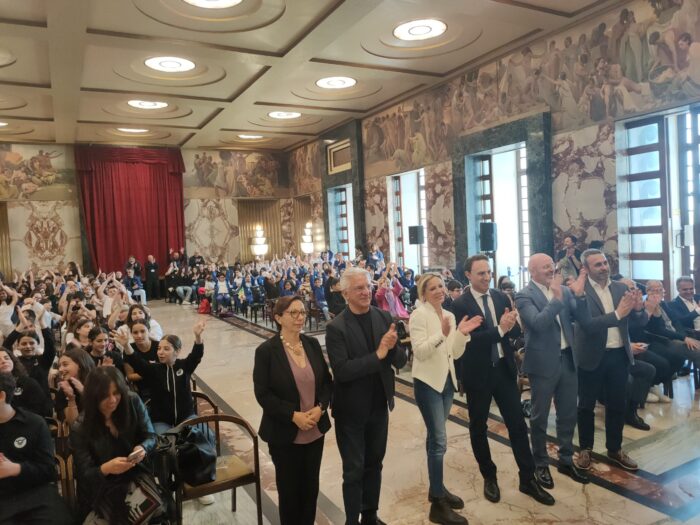 Stamani nel Salone dei Marmi di Palazzo di Città, alla presenza dell’On. Piero De Luca, del Sindaco di Salerno Arch. Vincenzo Napoli, dell’Assessore alla Pubblica Istruzione Dott.ssa Gaetana Falcone e dell’Avv. Mariarosaria Altieri Presidente di Sistemi Salerno Servizi Idrici S.p.A., si è svolto l’evento conclusivo del progetto di educazione ambientale rivolto alle ultime classi delle scuole primarie e secondarie di primo grado salernitane “Le vie dell’Acqua”.
