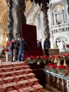 L’icona in giornata sarà deposta ai piedi del Baldacchino di San Pietro che fu realizzato dal Bernini ed inaugurato nel 1633 da Papa Urbano VIII. È stato Papa Francesco a volere che per le celebrazioni del Te Deum (31 dicembre) e della solennità di Maria Madre di Dio (1 gennaio) che coincide anche con la Giornata Mondiale della Pace celebrata da tutta la chiesa cattolica. L’immagine della Madonna che Viene dal Mare sarà presente anche sulla copertina del libretto liturgico della celebrazione del 1 gennaio.