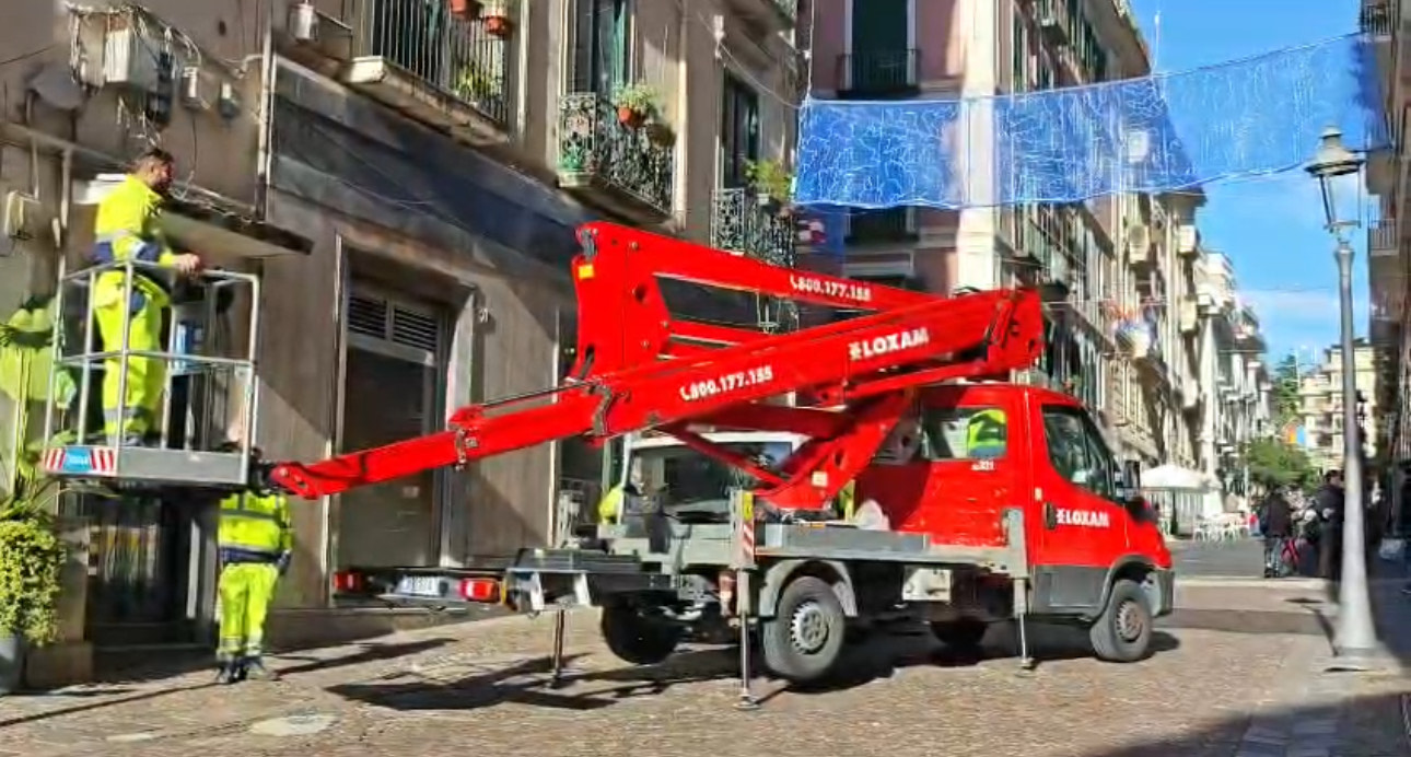 prenotazioni. È frenetico il lavoro in piazza Portanova per il montaggio del grande albero che sarà decorato con palle blu per richiamare i colori delle onde del mare d’inverno. Sull’installazione destinata a colorare Corso Vittorio Emanuele continuano a registrarsi problemi e anche stamattina, gli operai della Sim Luce erano al lavoro su Corso Vittorio Emanuele per perfezionare il funzionamento delle installazioni che ormai a quasi un mese dall’accensione continuano ad avere problemi e ad accendersi in maniera non omogenea senza riuscire a creare quell’effetto per le quali sono state scelte.