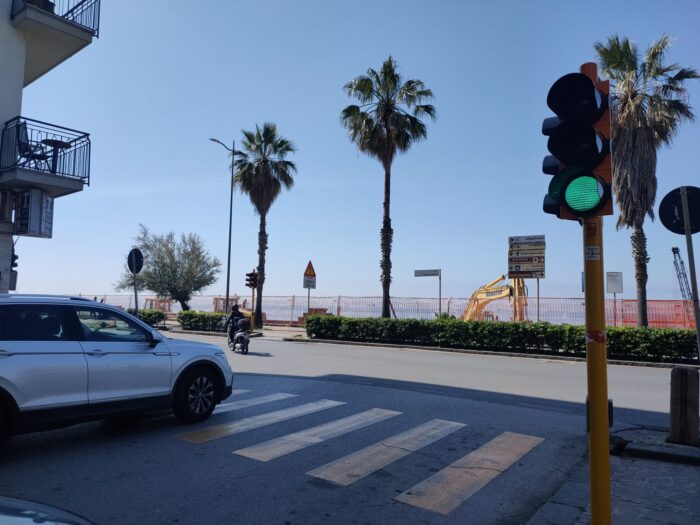 Semaforo intelligente in via Lungomare Marconi, ma non troppo, di notte lampeggia, le auto sfrecciano e i pedoni sono impossibilitati ad attraversare, perché il semaforo non si blocca neanche a chiamata. Ma anche di giorno la tempistica del semaforo sembra essere poco favorevole per gli automobilisti che vogliono immettersi sul lungomare da via Mantenga, con solo 15 secondi di verde per effettuare la manovra.