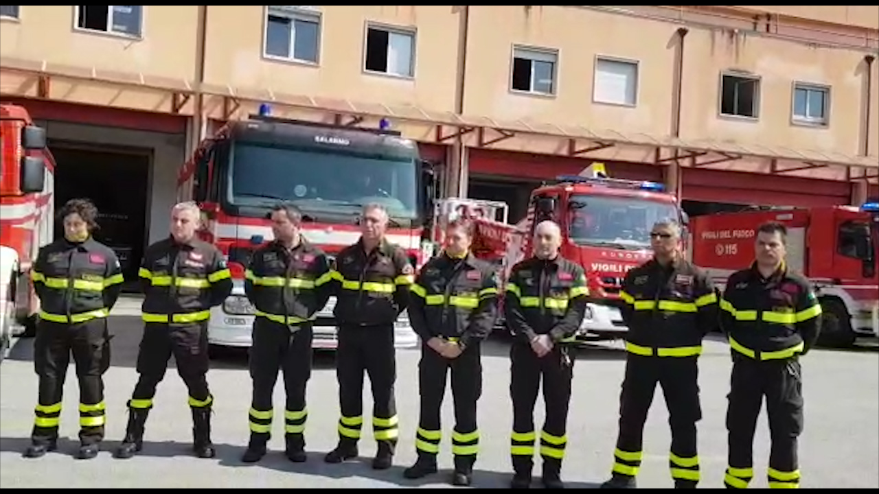 Eroi che celebrano gli eroi. Le sirene spiegate in segno di onore e rispetto. Gli applausi, forti, sentiti, degli uni e degli altri. Spettatori, più che interessati, i pazienti ed anche lo stesso personale sanitario e parasanitario alle finestre dell’ospedale di Salerno ed uno striscione a dir poco eloquente. Stamani una rappresentanza dei Vigili del Fuoco di Salerno ha voluto rendere onore ai medici ed a tutti gli operatori dell’azienda ospedaliera universitaria Ruggi di Salerno impegnata nella lotta al Coronavirus.