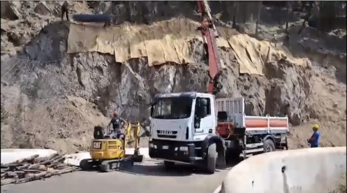 Hanno aspettato che terminasse l’ondata di maltempo intensa e violenta, che si è abbattuta anche sul comune capoluogo, i rocciatori dell’impresa Cardine e gli operai dell’Anas, guidati dal sorvegliante Alagna,  che anche oggi sono al lavoro sul tratto di strada statale 163 compreso tra Cetara e Maiori, in località a Capo d’ Orso, dove da ieri è di nuovo chiuso completamente il passaggio alle automobili. Il peggioramento delle condizioni climatiche ha infatti spinto l’Anas ad emettere una nuova ordinanza che prevede la chiusura totale fino alle ore 16.00 di domani mercoledì 30, diversamente da una prima fase in cui è stato consentito il passaggio dalle 16 alle 8 del mattino successivo. La decisione è stata assunta, per motivi precauzionali in relazione alle previste condizioni meteo avverse, in esito a sopralluogo al quale hanno partecipato, tra gli altri, rappresentati della Regione Campania, Sindaci dei Comuni della Costiera Amalfitana, rappresentanti dell’impresa esecutrice dei lavori per conto del Comune e personale di Anas. Si legge testualmente in un’ordinanza dell’Anas. Bisognerà attendere ora il bollettino meteo per capire come andare avanti. Complice il bel tempo, nel weekend appena trascorso, al termine di un incontro in prefettura era stato invece decisa la riapertura totale della strada. Ed ora è corsa contro il tempo e contro il maltempo. Il 13 settembre aprono le scuole e dei sindaci della costiera amalfitana speravano di essere a buon punto per la messa in sicurezza in modo da garantire l’apertura della strada anche in alcune fasce orarie più trafficata.