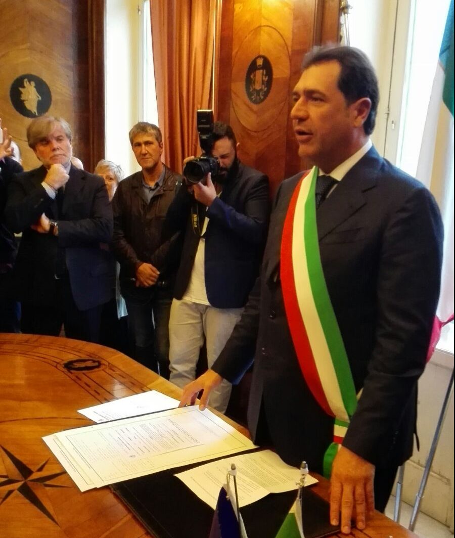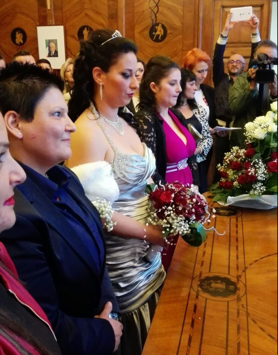 La prima unione civile tra persone dello stesso sesso a Pontecagnano Faiano è stata celebrata tra la pioggia e le lacrime che