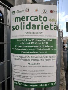 I particolari: “Rivolgo ai salernitani il sentito invito a portarsi, dalle ore 8.30 alle ore 12.30 di mercoledì 23 e 30 dicembre, presso i mercati rionali di Pastena (via De Crescenzo), Torrione (via Robertelli) e del centro città (piazza Casalbore). Lì potranno acquistare dai nostri banchi e depositare presso i punti di raccolta gli alimenti di ortofrutta e generi alimentari. Si accetteranno anche alimenti comprati in altri negozi nelle vicinanze dei mercati. Tutto quanto sarà indirizzato, e quindi devoluto, dalla Caritas alle famiglie bisognose. Ricordo che le aree mercatali sono luoghi sicuri”.