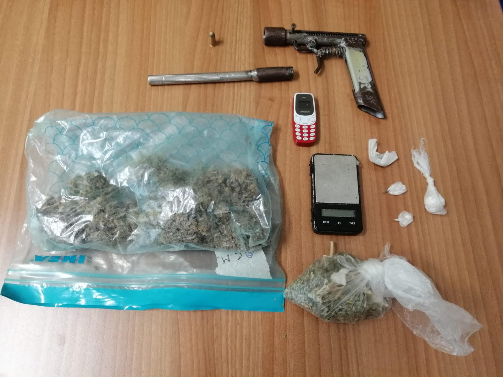 Un mini market della droga, ma anche una pistola giocattolo pronta ad esplodere colpi. E’ quanto i carabinieri, in collaborazione con l’unità cinofila di Sarno hanno trovato a casa di un giovane pregiudicato di Montecorvino Pugliano, C.A., queste le iniziali, 26 anni. Le accuse nei suoi confronti sono di spaccio di sostanze stupefacenti e detenzione di arma clandestina. I militari, nel corso della perquisizione, hanno rinvenuto un piccolo mini market di droga di vario tipo tra cui hashish e cocaina, un bilancino di precisione ma anche una pistola calibro 7,65 fabbricata in maniera rudimentale ma a tutti gli effetti un’arma in grado di sparare come confermato da una perizia balistica. La pistola aveva anche un colpo in canna e fa pensare ai carabinieri che il pregiudicato forse teneva di poter subire un agguato o comunque che dovesse difendersi.