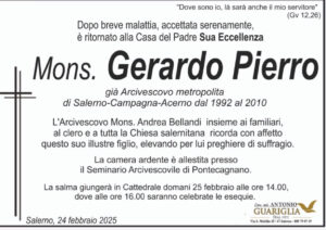 È stato per diciotto anni un Arcivescovo tra la gente e per la gente ed ha contribuito notevolmente alla crescita morale e civile della città e dell’intera Arcidiocesi affidata alla sua guida pastorale”. Con queste parole il sindaco di Salerno Vincenzo napoli ha ricordato monsignor Gerardo Pierro, citando anche le tante iniziative portate a segno per il Comune di Salerno come la realizzazione di centri di aggregazione al servizio di poveri e immigrati oltre alla edificazione del seminario metropolitano, Giovanni Paolo II .