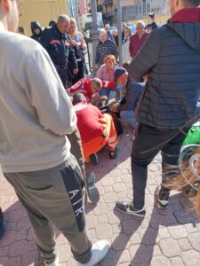 La signora stava camminando sul marciapiede quando all’improvviso la moto, una Kawasaki, si è scontrata con una Renault Clio, per una dinamica tutta ancora da chiarire, che ha fatto rimbalzare la moto facendola piombare sul marciapiede, dove in quel momento si trovava la signora. Sul posto è subito intervenuta una pattuglia del Radiomobile dei Carbinieri ed il personale del 118 a bordo di un’ambulanza della Croce Rossa che con le opportune cautele hanno trasportato la donna ferita in codice rosso al’ ospedale di Via San Leonardo . La signora ha riporto al frattura ad un arto e varie lesioni al volto.