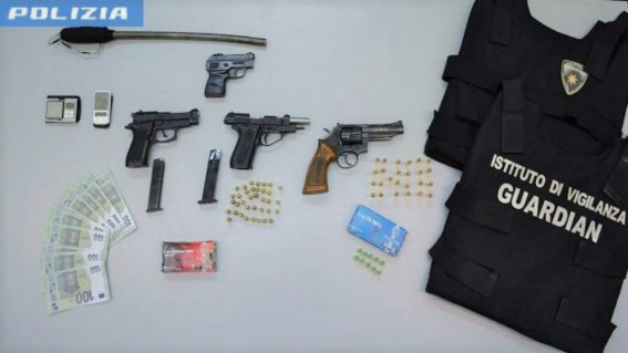 Nella serata di ieri, la Polizia di Stato personale della Squadra Mobile della Questura di Salerno, ha proceduto all’arresto di Stefano Gaeta, per detenzione di armi clandestine, detenzione abusiva di munizionamento, ricettazione, detenzione di banconote false e di oggetti atti ad offendere. Secondo la ricostruzione operata della Polizia Giudiziaria, l’indagato, a seguito di perquisizione personale e domiciliare, è stato individuato in possesso di n . 4 pistole, di cui: un revolver 357 Magnum con matricola abrasa; una pistola a salve replica della Beretta 85/FS e una pistola a salve replica della Beretta 8 4 modificate e rese idonee allo sparo nonché un’ulteriore pistola semiautomatica cal. 22, n. 7 7 cartucce di vario calibro, n. 2 giubbotti antiproiettile dell’Istituto di Vigilanza “Guardian”, un passamontagna, n. 1 busta di plastica con residui di cocaina, n . 2 bilancini d i precisione, n . 10 banconote da euro 100,00 false, un manganello artigianale con fusto in metallo e un motociclo marca Honda Mod. XADV, provento di furto.