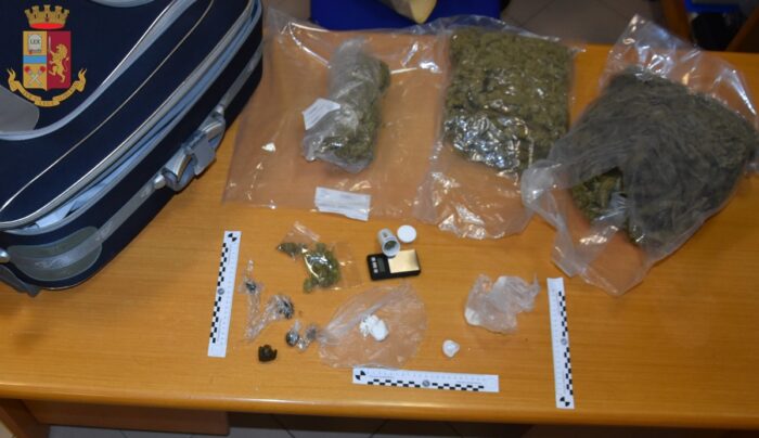 Peraltro, il maggior quantitativo di stupefacente è stato trovato dagli Agenti nel garage della casa del pusher, ove gli Agenti hanno trovato una valigia di colore blu con dentro oltre un chilo e mezzo di Marijuana.