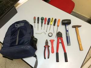 La perquisizione personale e veicolare, invece, ha consentito di rinvenire in uno zaino, custodito all’interno del bauletto porta oggetti, numerosi arnesi atti allo scasso (cacciaviti, pinze, martelli, etcc.), dei quali il RUSSO non ha saputo dare contezza. Il materiale da scasso rinvenuto, sottoposto a sequestro unitamente al motoveicolo, sarà oggetto di ulteriori accertamenti per stabilirne provenienza ed utilizzo da parte dell’arrestato.