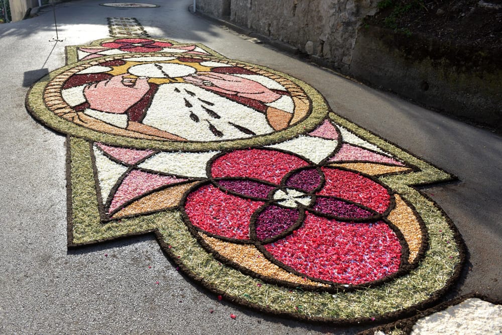 Coinvolgerà diverse figure professionali ed artistiche che sistemeranno i fiori frondati e minuzzati ad emulazione dell’opere del mosaico con diverse tecniche di realizzazione dell’Infiorata tradizionale partendo dal piazzale della chiesa. Sarà un vero e proprio colpo d’occhi per tutti vedere la lunga distesa di “tappeti di fiori artistici” a sfondo religioso, un percorso ad alto impatto visivo ed emotivo.
