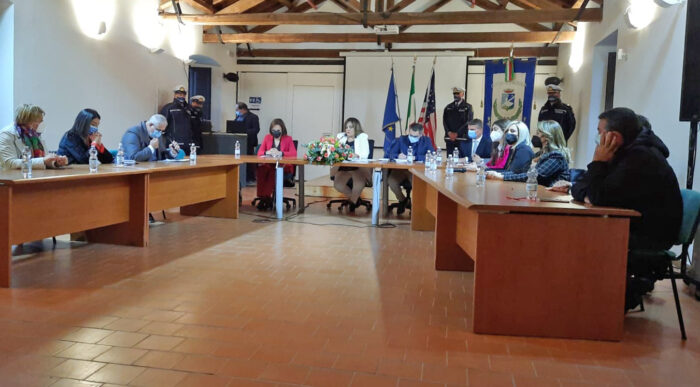 Prima di concludere il suo intervento, la Cimino ha ricordato le priorità della sua Amministrazione Comunale: «Molte sfide sono in corso ed altre ci attendono. Ne abbiamo parlato molto anche nel nostro programma elettorale. Un piano che si sviluppa in diversi settori di intervento: ambientale a sportivo, per arrivare ai giovani, ai rapporti con i cittadini e con le associazioni, ai lavori pubblici, agli strumenti di pianificazione territoriale, alle opportunità di sviluppo e di occupazione».
