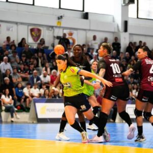 LA PARTITA. Dopo il 28-28 di Gara 1, una vittoria, da una parte o dall’altra, decide il confronto. Thierry Vincent, tecnico della Jomi, conferma roster e dettami tattici, fondando il proprio successo ancora una volta sul persistente 7vs6. Dall’altra parte l’allenatrice delle trapanesi Cristina Cabeza rinuncia all’ex Daniela Pinto Pereira tra i pali e lancia nella mischia la mancina Alexandra Do Nascimiento. Ma come in Gara 1, è soprattutto Ateba – ancora 14 reti per la camerunense – a trascinare l’attacco delle Arpie. Salerno s’affida al collettivo, all’extra player e ad una serie giocata sugli scudi dal capitano azzurro Ilaria Dalla Costa, MVP sui 120’ e autrice di otto segnature in Gara 2.