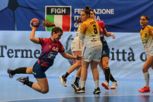 finali Oderzo trova la rete del + 1, la prima frazione di gioco si chiude con il team allenato da Cavallaro avanti sul risultato di 11 – 10. Ad inizio ripresa la Jomi Salerno trova subito la rete del pareggio con Ramona Manojlovic (11 – 11). Al 6′ Oderzo però con un parziale di due a zero si porta sul 14 – 12. Al 10′ il team allenato da Cavallaro allunga sino al + 4 con la rete di Duran (17 – 13), coach Avram è costretta a chiamare il