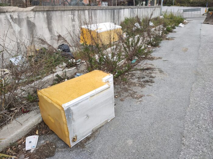 E’ completamente abbandonata, dovrebbe essere chiusa, ma di fatto dopo che sono stati spostati i transennamenti con new jersey di cemento è diventata nel corso del tempo una discarica a cielo aperto, dove non di rado soprattutto