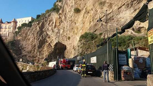 Intorno alle 7 di questa mattina alcuni grossi blocchi di roccia si sono staccati dal costone sovrastante la Statale 163 Amalfitana, sulla grotta “Annunziata”, tra il Convento di San Francesco e il Castello Miramare nel comune di Minori. Paura tra i residenti e le persone che già operavano nella zona. Sul posto sono giunti i Vigili del Fuoco, i Carabinieri e gli Agenti della Polizia Locale per la rimozione dei frammenti dall’asfalto e l’avvio delle operazioni di messa in sicurezza. Si sono registrati rallentamenti e disagi al traffico veicolare.