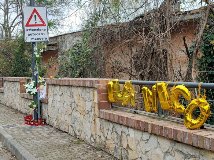 Fiori, palloncini, candele, una scritta sul palo dell’illuminazione in via Carlo De Iuliis, la strada da Capezzano a Cologna, lasciato dagli amici sul luogo dove Nicholas Galluzzi ed Ilaria Bove, rispettivamente 18 e 15 anni hanno perso la vita.