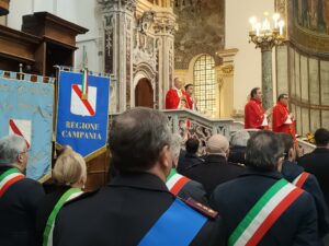 La  polizia municipale della Regione Campania onora San Sebastiano martire, protettore dei caschi bianchi. E’ stato il Duomo di Salerno ad accogliere questa mattina  uomini e donne in divisa,  rappresentati dai Gonfaloni dei comuni di provenienza,  dove si è svolta  la cerimonia religiosa, con la celebrazione della Santa Messa  presieduta da sua Eccellenza Monsignor Andrea Bellandi, Arcivescovo di Salerno – Campagna – Acerno e animata dal Coro della Diocesi di Salerno.