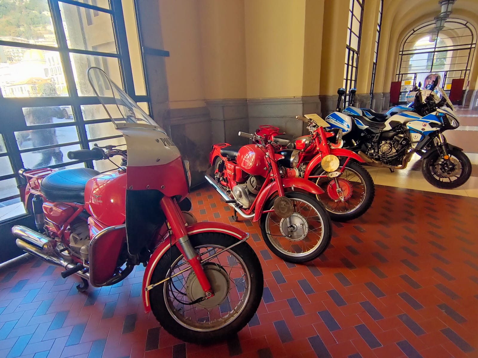 Nell’atrio del Teatro Augusteo ed in Piazza Amendola diverse auto e dispositivi in uso ai caschi bianchi e l’esposizione di cimeli e mezzi d’epoca della Polizia Municipale di Salerno.