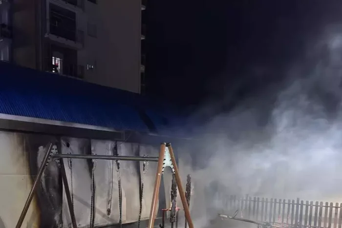 “Stanotte qualcuno ha dato fuoco all’area giochi appena inaugurata, un luogo nato per regalare sorrisi e spensieratezza ai nostri bambini.