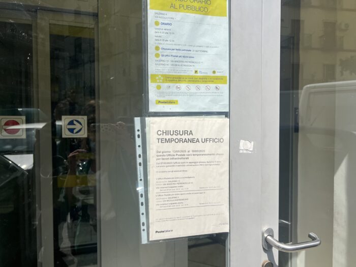 Un crollo del solaio all’ufficio postale di Fratte ha lasciato l’utenza della zona senza servizio per una settimana. La segnalazione è arrivata così sulla scrivania del primo cittadino di Salerno Vincenzo Napoli dopo le richieste e gli appelli dei residenti e non solo raccolti dal consigliere comunale Antonio Carbonaro. Davanti alle porte un cartello emblematico che annuncia lo spostamento dei servizi presso un altro ufficio e le difficoltà soprattutto di anziani che in quella sede postale hanno trovato un vero e proprio presidio efficiente. E così dopo una settimana – con i conseguenti lavori interni agli uffici che stanno già procedendo – è stato il sindaco dell’ente di via Roma a prendersi in carico la questione, interfacciandosi anche con i vigili del fuoco intervenuti in un primo momento. Il crollo del solaio, potrebbe dipendere da un’infiltrazione d’acqua da un appartamento sovrastante, nello stabile dove sono presenti gli uffici postali. Ora si proverà a velocizzare lavori e mettere in sicurezza i luoghi, confrontandosi anche con poste italiane.