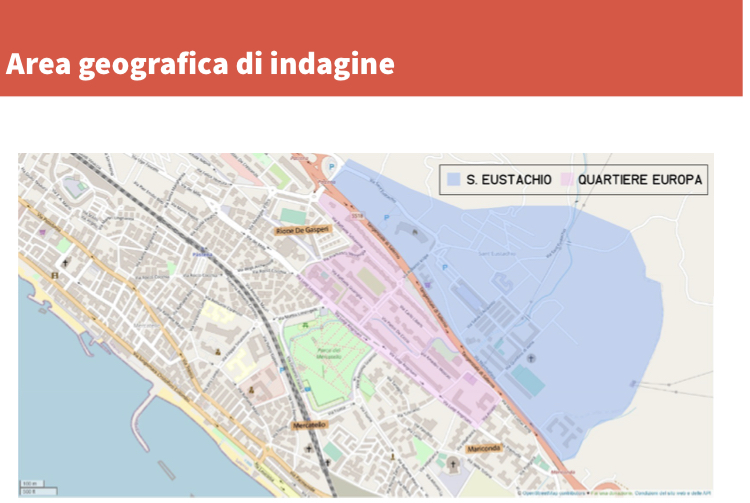Sant’Eustachio ed Europa, situati nella parte orientale della città di Salerno. L’emergenza Covid ha raddoppiato il numero delle famiglie povere : è il dato che emerge dalla ricerca condotta nei mesi di aprile e maggio da un team composto dalla Parrocchia di Sant’Eustachio e dalla squadra di rugby popolare Zona Orientale, a cui ha contribuito anche la Parrocchia Gesù Redentore, e con il supporto metodologico dell’Osservatorio Politiche Sociali dell’Università di Salerno . Nelle conclusione del lavoro si legge che, in un contesto sociale e culturale svantaggiato rompere “la trappola della povertà” vuol dire anche curare gli aspetti dell’età evolutiva dei bambini, in modo da non incentivare nel futuro l’abbandono scolastico. Il lavoro ha un ruolo primario per gli intervistati. Il reddito riesce solo in parte a sopperire alla sua mancanza. Molte famiglie vivono con gli aiuti statali senza una prospettiva lavorativa. La salute non ricopre un ruolo primario per la maggioranza degli intervistati. Emerge, inoltre, una scarsa attitudine al cooperare con gli altri per migliorare le condizioni del quartiere;Il quartiere di Sant’Eustachio è quello che ha visto aumentare più velocemente la quantità di persone a cui mancano anche i beni di prima necessità.