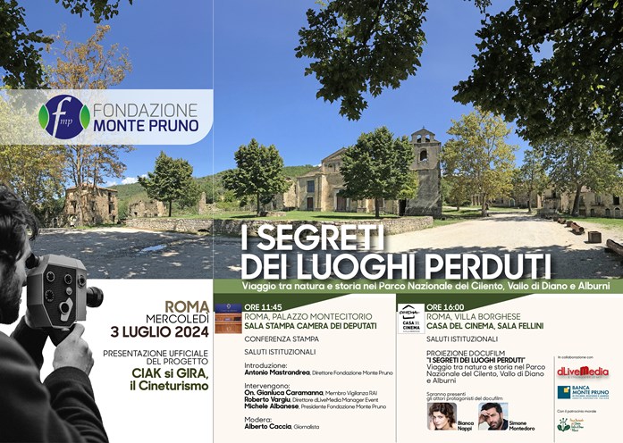 Dopo la presentazione a dicembre, al Ministero dei Beni Culturali a Roma, e la realizzazione delle riprese iniziate a febbraio e terminate a fine aprile, ci sarà l’attesa presentazione ufficiale del docufilm “I SEGRETI DEI LUOGHI PERDUTI – Viaggio tra natura e storia nel Parco Nazionale del Cilento, Vallo di Diano e Alburni”.