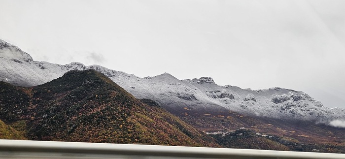 Prima neve sul Monte Cervati, la vetta più alta della Campania, in provincia di Salerno.