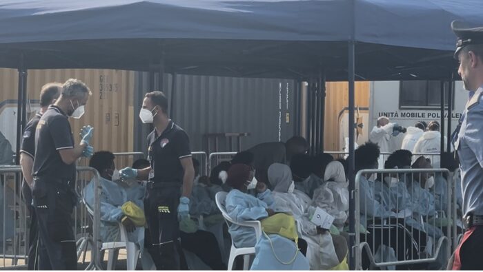 Occhi attenti anche da parte delle forze dell’ordine e soprattutto dei medici e degli uomini della croce rossa, dell’humanitas e di quanti hanno dovuto affrontare l’emergenza sanitaria con la dovuta cura e delicatezza, di cui Salerno è capace soprattutto in casi come questi. Ora per tutti i migranti che erano a bordo della SeaWatch sarà necessario un periodo di quarantena che potrebbe durare anche 21 giorni in un centro di accoglienza straordinaria ad Eboli che sarà presidiato dalle forze dell’ordine h24, con il supporto anche di militari dell’esercito. Per quanto riguarda invece le operazioni di soccorso avvenuto al largo delle coste vicine alla Tunisia, il comandante della capitaneria di porto di Salerno Giovanni Calvelli ha spiegato come sono avvenute e l’eventualità che la nave dopo un breve periodo potrà navigare in acque internazionali ma dovrà rispettare per 15 giorni il divieto di effettuare altre operazioni di soccorso. Nelle prossime ore saranno le forze dell’ordine e la polizia di stato ad accertare la presenza o meno di presunti scafisti a bordo che possano aver agevolato illegalmente la traversata a bordo di mezzi di fortuna. Quattro di questi sono stati recuperare in acqua, gli altri a bordo di un’imbarcazione di fortuna in legno. Tutti gli aspetti saranno chiariti nelle prossime ore. Intanto a spiegare la profilassi e la situazione sanitaria è stato il medico Luigi Buono che ha coordinato i soccorsi.