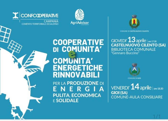 Anche i Comuni di Castelnuovo Cilento e di Gioi hanno aderito alla nuova procedura proposta da Confcooperative, per la realizzazione di Cooperative Energetiche Rinnovabili e Solidali mediante la costituzione di Cooperative di Comunità Imprese Sociali E.T.S.