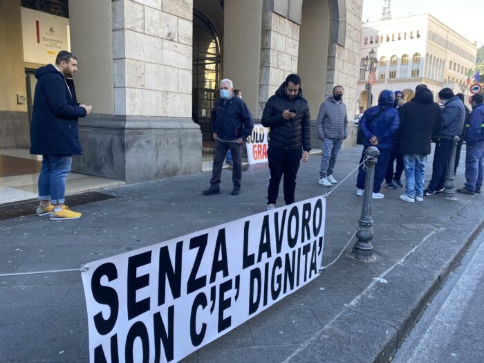 La decisione di comunicare ufficialmente all’Anac, la revoca degli appalti al sistema delle cooperative sociali finite sotto inchiesta a Salerno, ha riacceso, davanti all’ingresso del Comune di Salerno la protesta dei lavoratori   fermi dall’11 ottobre. Dopo giorni di relativa tranquillità conseguenti alle rassicurazioni ricevute da un incontro in Prefettura nel quale il Comune di Salerno aveva anticipato l’intenzione di realizzare un bando ponte, includendo la clausola sociale che impegnava le nuove imprese ad assumere i lavoratori delle ex cooperative, la miccia che ha fatto riesplodere la protesta è stata la comunicazione della revoca ufficiale degli appalti all’Anac, avvenuta ieri da parte del Comune. Come ha però spiegato questa mattina l’assessore all’ambiente del Comune di Salerno, Massimiliano Natella, incontrando gli stessi lavoratori sotto i portici del Comune di Salerno, si tratta di un atto dovuto e propedeutico per poter realizzare il bando. “Entro la prossima settimana saremo in grado di avviare il percorso attraverso due procedure, una a più breve termine ed una di maggiore portata – ha spiegato Natella- che ci consentiranno  di riassegnare i servizi fermi per via dell’inchiesta e della revoca dei lavori alle cooperative garantendo, attraverso la clausola sociale, la rioccupazione dei dipendenti attualmente fermi”.