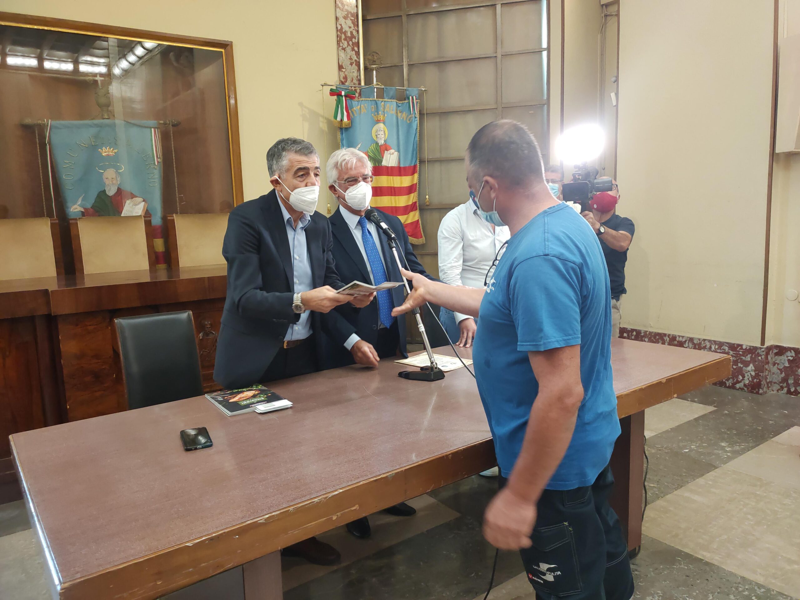 Nei momenti di picco, le tre squadre hanno raggiunto ben 600 famiglie a settimana. Per la cerimonia questa mattina a Palazzo di Città anche il consigliere comunale Giuseppe Zitarosa che mesi fa aveva proposto l’encomio proprio al sindaco Vincenzo Napoli.