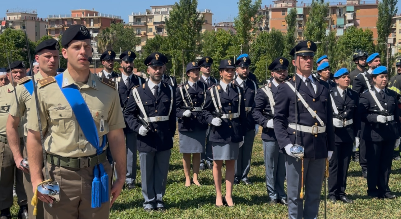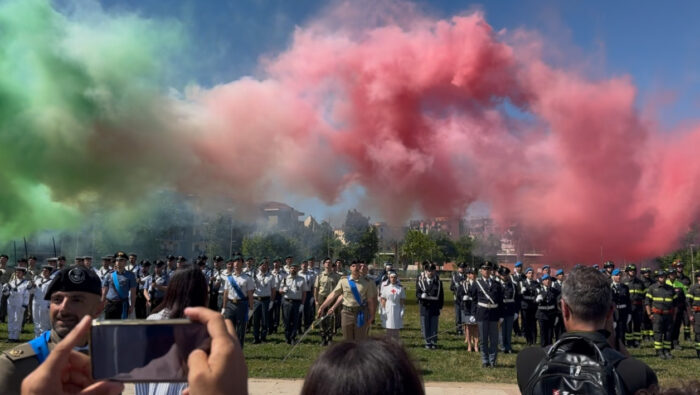 Non più piazza Amendola, ma il parco del Mercatello, che dopo gli schieramenti militari e gli onori alle autorità istituzionali, ha ospitato anche la consegna di 47 onorificenze. Anche sulle scelte musicali si sono registrate novità al tradizionale inno d’Italia,  gli studenti hanno aggiunto la Storia siamo noi.