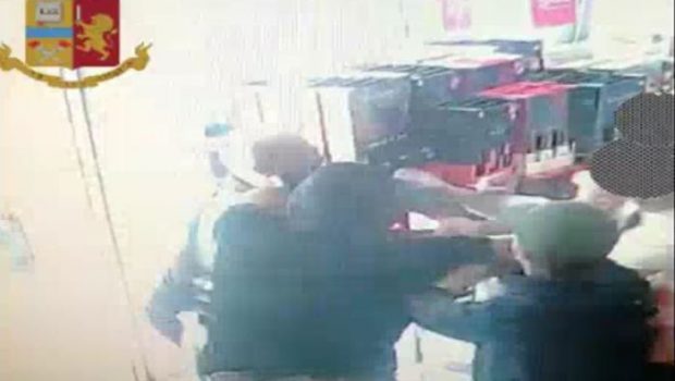 Un ultrà del Catania, Andrea Alonzo, 27 anni, che durante la trasferta con un centinaio di tifosi a Terni ha rubato merce da un autogrill del Salernitano, colpendo con una testata, schiaffi e pugni il direttore dell’attività, è stato arrestato dalla Digos della Questura etnea in flagranza differita per rapina impropria aggravata.