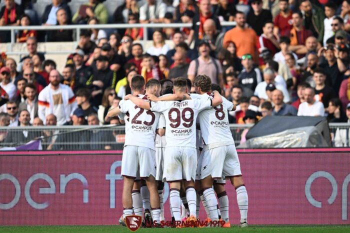 La Salernitana manda all’aria le residue speranze della Roma di tornare in corsa per il quarto posto. L’assalto finale dei giallorossi, sospinti da sessantamila spettatori e dalla notizia della nuova penalizzazione alla Juventus, non spaventa la squadra di Sousa che ribatte colpo su colpo ed assapora anche il gusto della fuga per la vittoria con Dia, palesemente trattenuto da Zalewski. Ne nasce una rissa e l’incerto arbitro Colombo se la cava con due gialli ai protagonisti dell’azione e due rossi alle panchine. Nel recupero del primo tempo Var ed arbitro ci hanno pensato un bel po’ prima di annullare il gol di Ibanez, palesemente viziato da un doppio tocco con le mani di Belotti. La squadra granata, scortata da oltre tremila tifosi, ha dato una bella dimostrazione di gioco e carattere, tenendo in scacco la Roma che Mourinho ha presentato in versione rimaneggiata e che è apparsa priva di idee. Le iniziative di qualche singolo, la ricerca degli episodi su calcio piazzato contro la ricerca delle combinazioni palla a terra o di soluzioni alternative come la profondità da trovare con i movimenti delle punte alle spalle della linea difensiva giallorossa. La presenza di Bohinen in mediana aumenta la capacità di palleggio dei granata, ma è Coulibaly a vestire i panni del regista ispirato per premiare il taglio di Candreva: il resto è poesia in movimento. Carezza d’esterno e gol. La classe, del resto, non ha età. La Salernitana controlla e prova a pungere, la Roma ci mette i nervi ma non certo le idee. Nella ripresa Matic e Pellegrini alzano il tasso di esperienza e qualità, ma il pareggio è più che altro un regalo della Salernitana. Daniliuc commette un fallo evitabile da cui nasce la punizione che Pellegrini calcia forte verso la porta di Ochoa che non riesce a respingere verso la bandierina. Ne approfitta El Sharawy che fa uno a uno. La Salernitana non si abbatte e ricomincia a tessere la sua tela. Candreva si smarca e riceve palla, cercando subito Piatek dentro l’area. Il polacco arpiona il pallone e poi, grazie ad un rimpallo favorevole, confeziona l’assist per Dia che di tacco riporta in vantaggio i suoi. Nel finale la Roma trova il pari su una carambola da corner. Matic scarica con rabbia alle spalle di Ochoa. Finisce in parità, ma la Salernitana può esultare per una prestazione di contenuti e spessore. I tifosi granata cantano ed applaudono. Il futuro può cominciare.